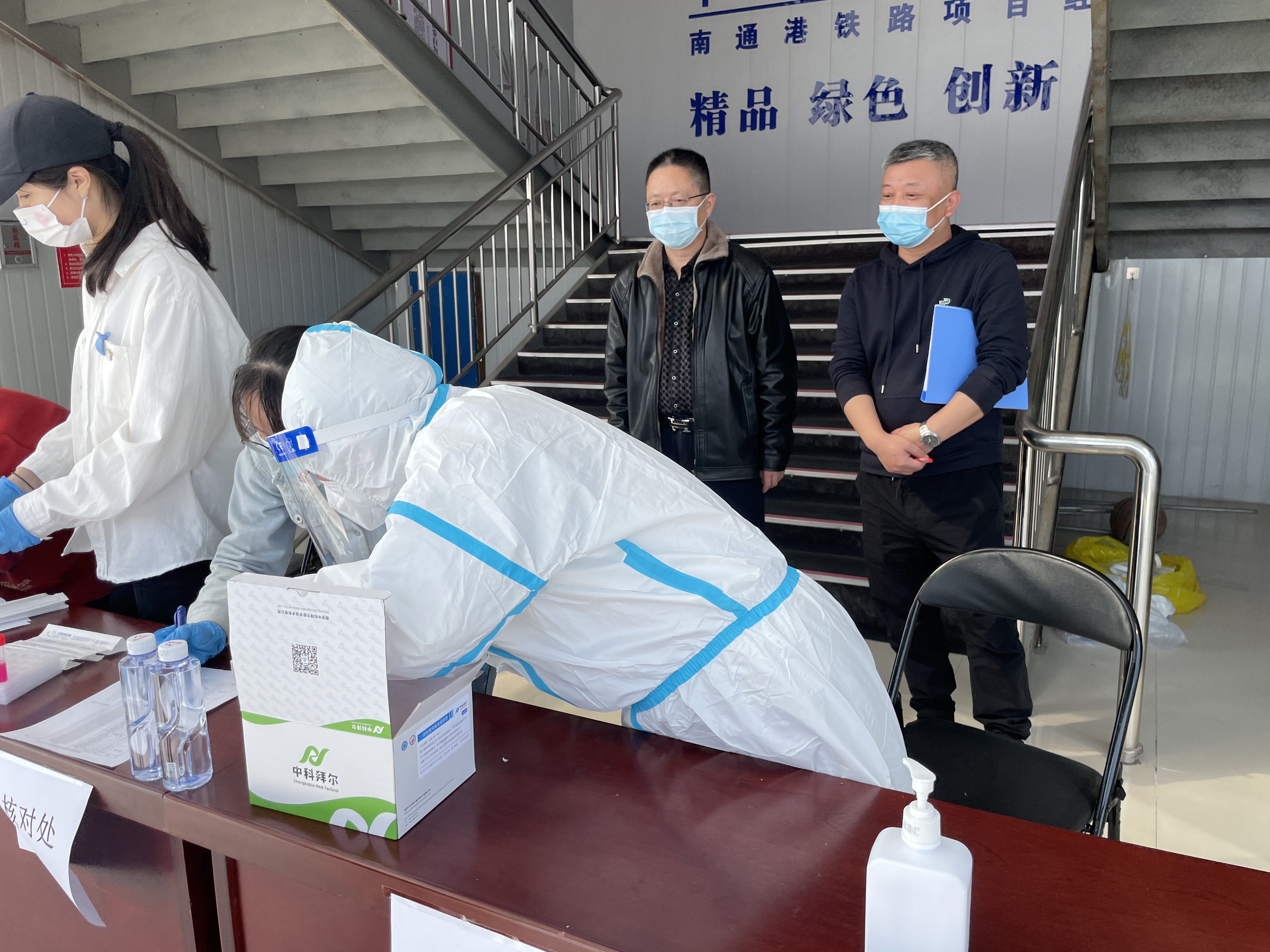 工作間隙,趙祖培認(rèn)真學(xué)習(xí)上級相關(guān)防疫要求、防疫知識,并通過推進(jìn)會、微信群等方式及時向各參建單位人員做好宣貫工作,引導(dǎo)他們正確認(rèn)識、科學(xué)對待疫情,為工程建設(shè)隊(duì)伍的安全穩(wěn)定提供了保障。他忙碌的身影,經(jīng)常穿梭于各項(xiàng)目部、施工點(diǎn),仔細(xì)檢查人員進(jìn)出“兩碼一測”登記、公共區(qū)域消毒、防疫物資準(zhǔn)備等情況,一旦發(fā)現(xiàn)問題,嚴(yán)肅要求整改,并跟蹤整改情況直至閉環(huán)。為降低疫情傳播風(fēng)險,他積極與轄區(qū)內(nèi)衛(wèi)生服務(wù)中心溝通協(xié)調(diào),多次把醫(yī)務(wù)人員請進(jìn)三個項(xiàng)目部,組織全體參建人員完成近2500人次的核酸監(jiān)測,不僅降低了疫情傳播風(fēng)險,還為工程建設(shè)贏得了時間。