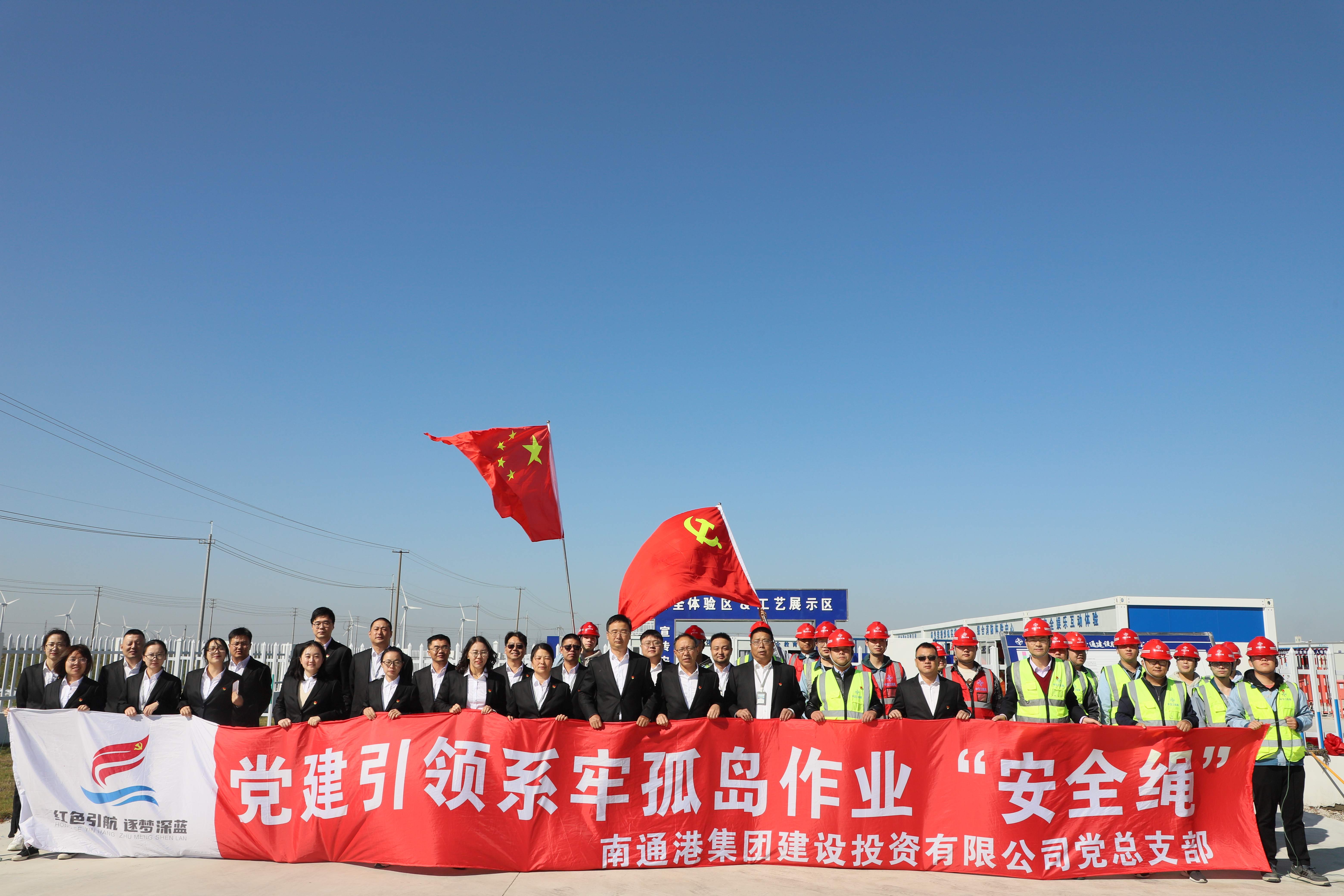 為深入學(xué)習(xí)習(xí)近平總書記關(guān)于安全生產(chǎn)重要論述及指示精神,發(fā)揮黨建引領(lǐng)作用,以黨的政治優(yōu)勢推動安全責(zé)任體系落實,進一步普及安全知識,提升參建人員安全素質(zhì),10月10日上午,建投公司黨總支與中交三航局黨支部聯(lián)合開展“黨建引領(lǐng)系牢孤島作業(yè)‘安全繩’”主題黨日活動暨通州灣三港池“2+1”碼頭工程安全體驗館開館儀式。集團黨委委員、建投公司黨總支書記、董事長姜金勇出席活動。建投公司、中交三航局南通港通州灣港區(qū)三港池1#-3#碼頭工程項目部全體黨員參加活動。