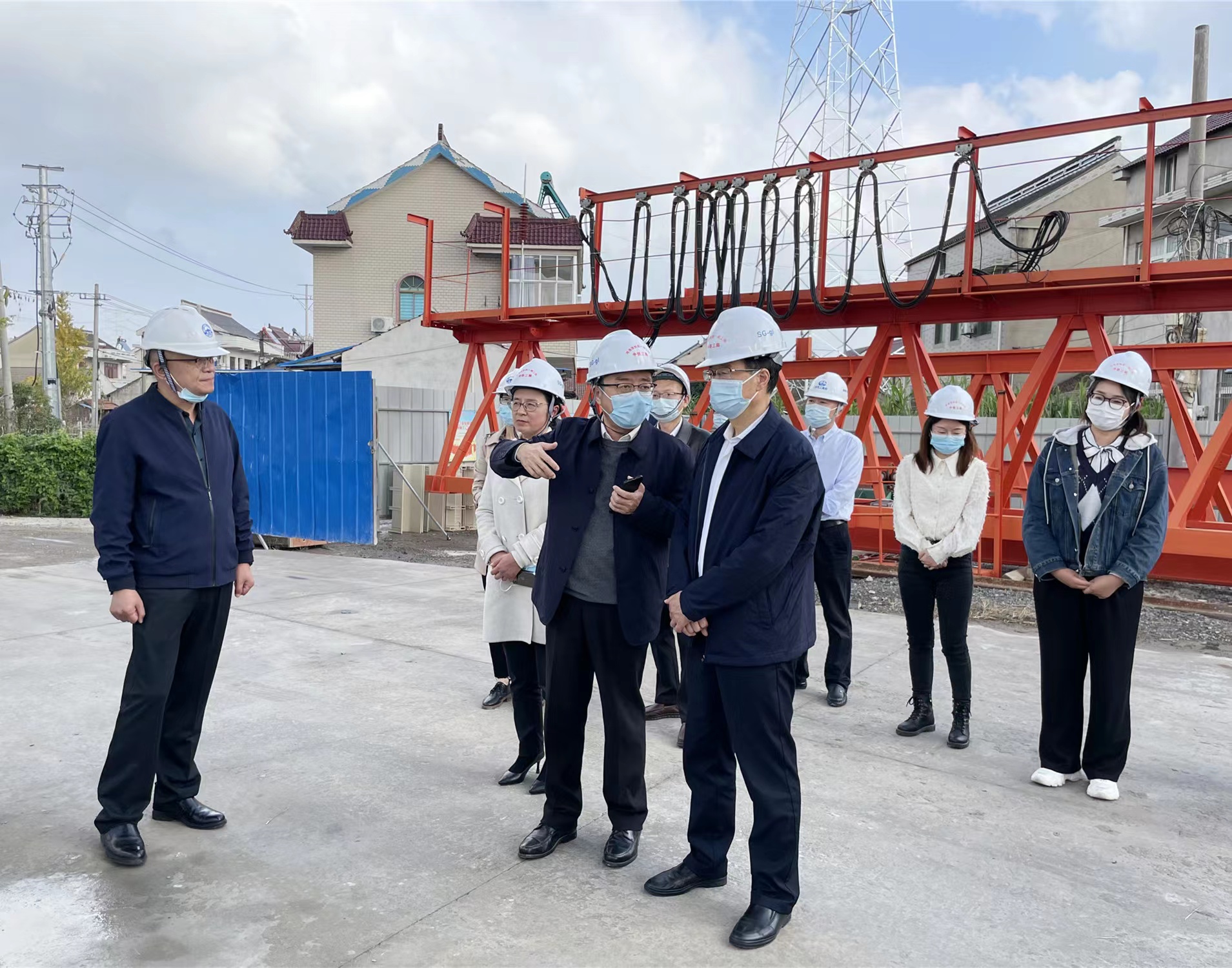 陳俊等一行實(shí)地察看了跨寧啟鐵路特大橋128米連續(xù)梁施工現(xiàn)場(chǎng)。南通港集團(tuán)通海鐵路建設(shè)有限公司總經(jīng)理鎮(zhèn)杰向調(diào)研組匯報(bào)了項(xiàng)目建設(shè)概況、區(qū)位優(yōu)勢(shì)、發(fā)展定位、建設(shè)進(jìn)展及下階段重點(diǎn)推進(jìn)計(jì)劃等情況。