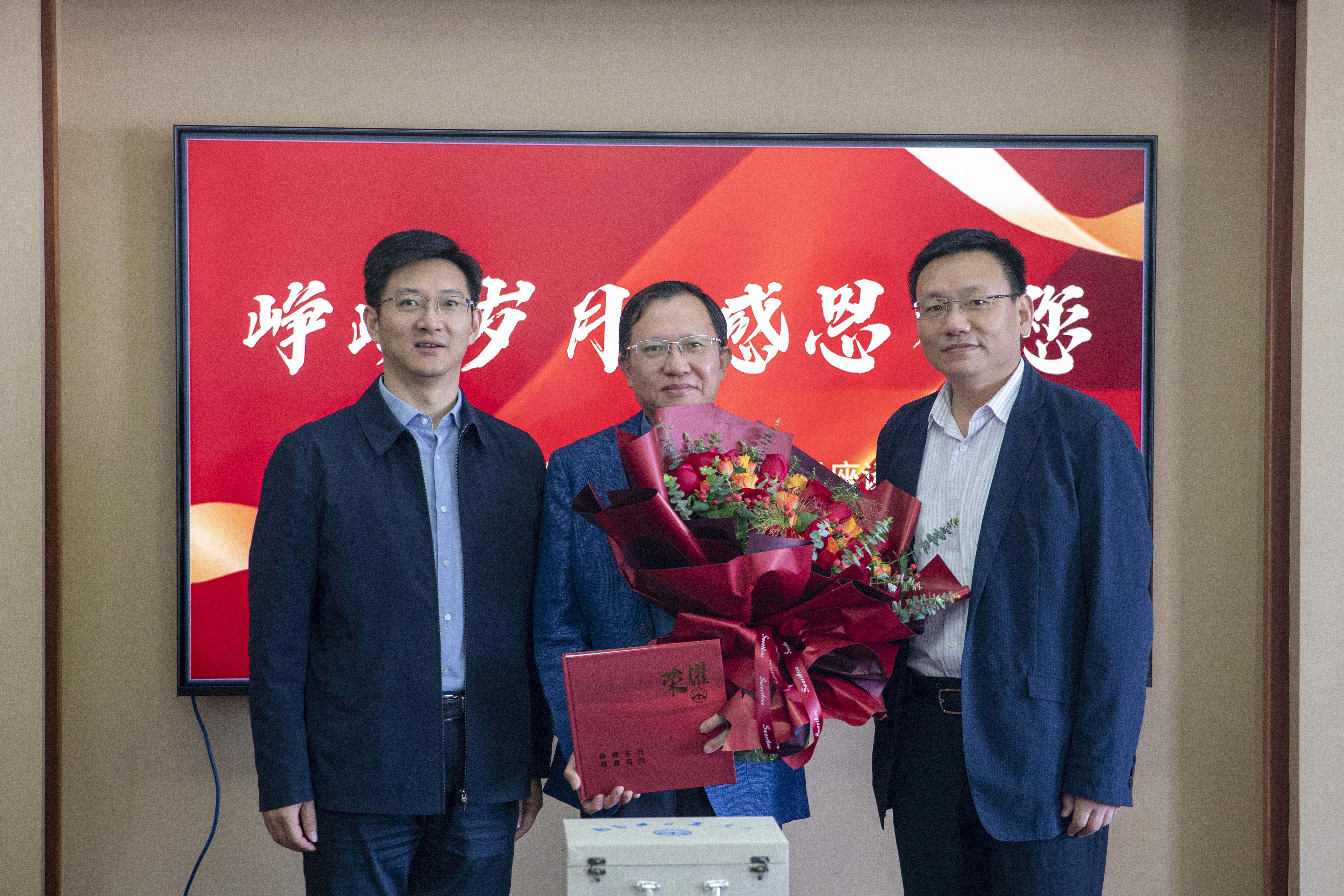 座談會(huì)上,朱玉強(qiáng)和劉建代表集團(tuán)向葛建華同志贈(zèng)送紀(jì)念冊(cè)、紀(jì)念品和鮮花。