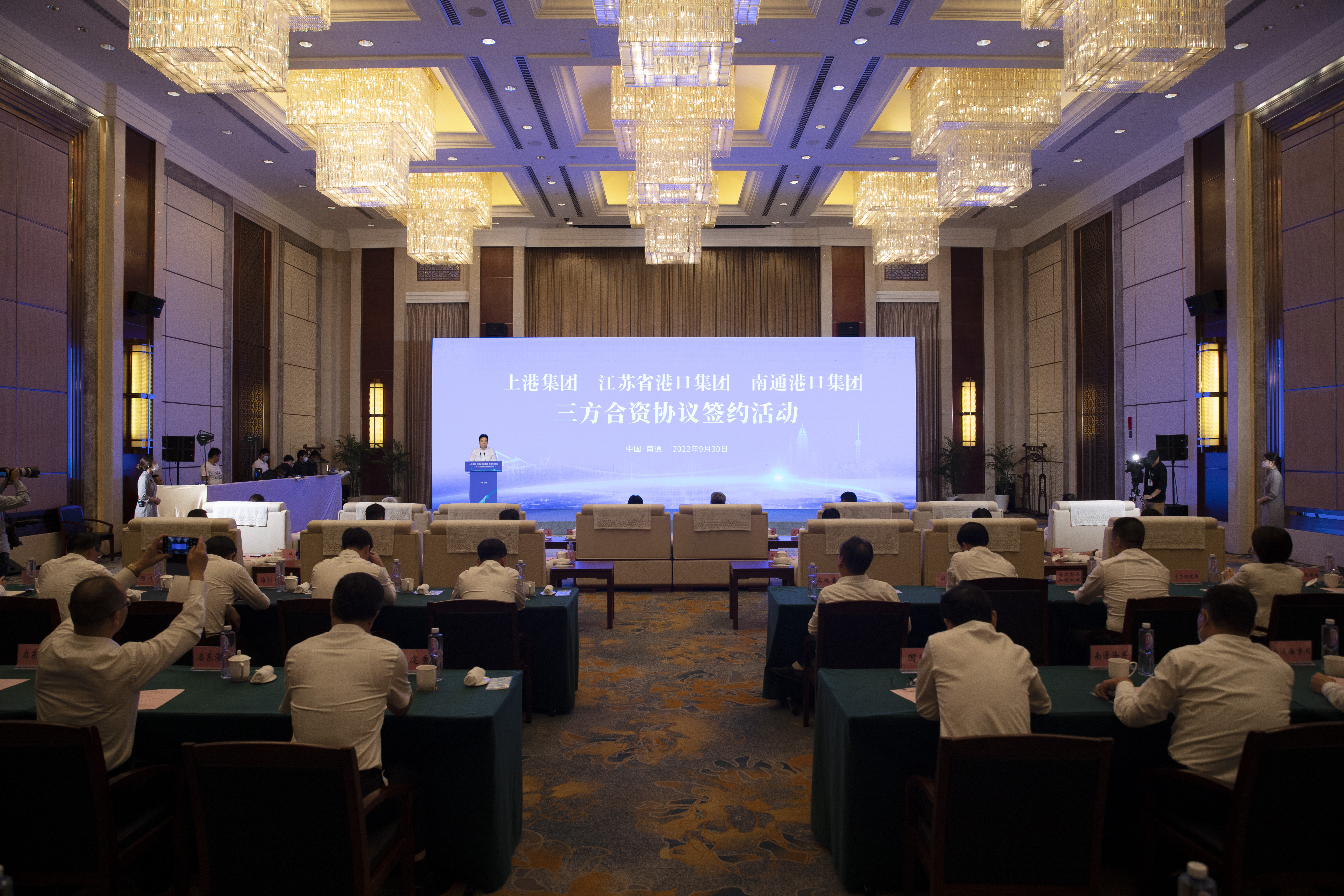 四時俱可喜,最佳新秋節(jié)。在金秋送爽、喜迎豐收的美好時節(jié),9月30日上午,上海國際港務(wù)集團、江蘇省港口集團、南通港口集團在濱江會議中心簽署協(xié)議,三方將組建合資公司,攜手運營呂四起步港區(qū)集裝箱碼頭。上港集團黨委副書記、總裁嚴俊,省港口集團黨委副書記、總經(jīng)理關(guān)永健,市委副書記、市長吳新明致辭并見簽。市委常委、常務(wù)副市長陸衛(wèi)東主持簽約活動。