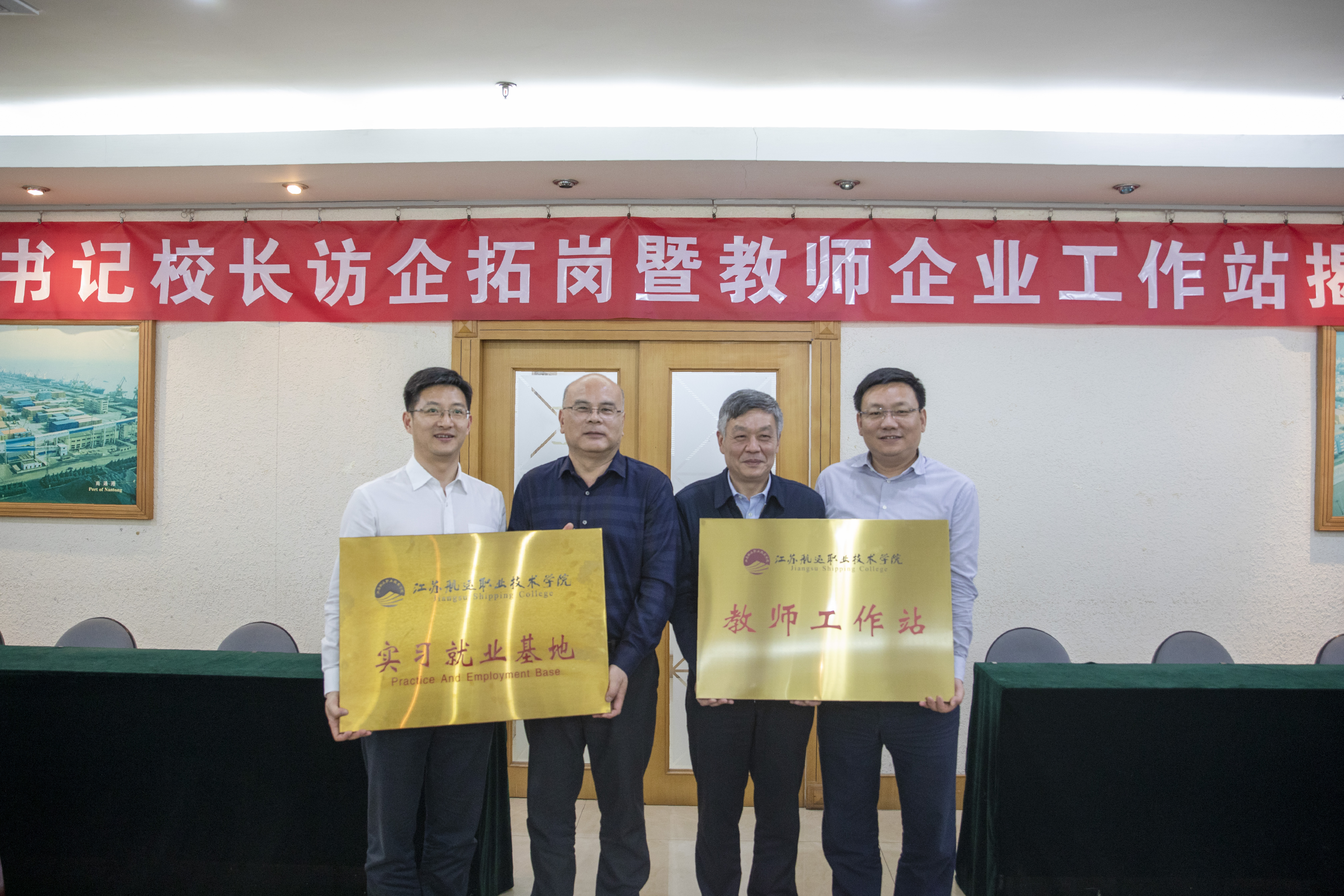 雙方共同觀看了南通港(港口)集團有限公司企業(yè)宣傳片。南通港(港口)集團與江蘇航運職業(yè)技術(shù)學(xué)院雙方就實習(xí)與就業(yè)基地建設(shè),教師企業(yè)工作站設(shè)立以及校企深度合作等工作進行了深入交流。薛揚與朱玉強、施祝斌與劉建分別為校企“教師工作站”“實習(xí)就業(yè)基地”揭牌。