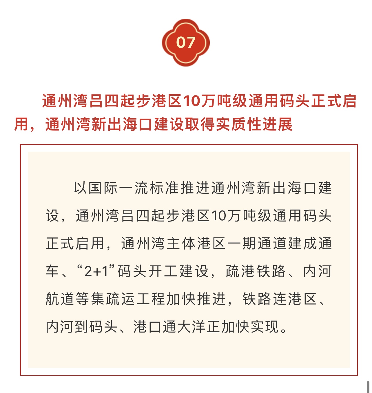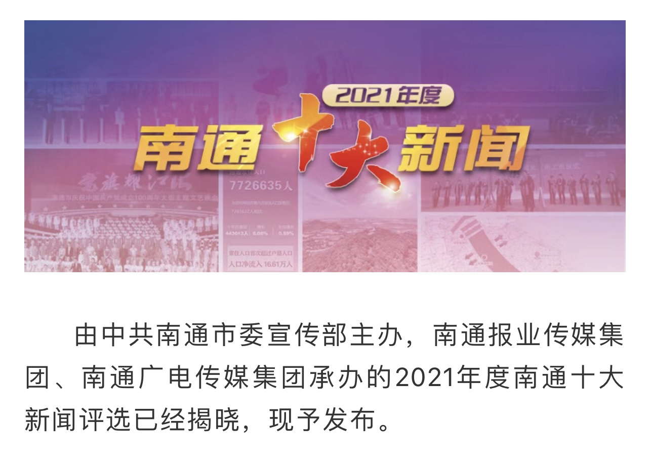 近日,由中共南通市委宣傳部主辦,南通報業(yè)傳媒集團、南通廣電傳媒集團承辦的2021年度南通十大新聞評選結(jié)果揭曉,“通州灣呂四起步港區(qū)10萬噸級通用碼頭正式啟用,通州灣新出??诮ㄔO(shè)取得實質(zhì)性進展”成功入選。