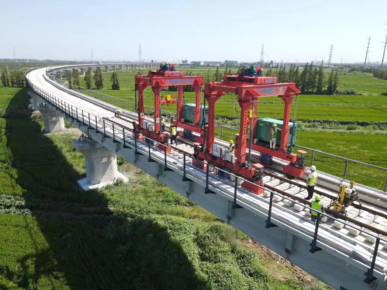 9月19日,在南通港通海港區(qū)至通州灣港區(qū)鐵路專用線一期工程施工現(xiàn)場,兩臺(tái)輪式龍門吊在施工人員協(xié)同操作下,將一節(jié)25米軌排平穩(wěn)地鋪設(shè)在橋面上,標(biāo)志著南通港疏港鐵路一期工程進(jìn)入正線鋪軌施工階段。