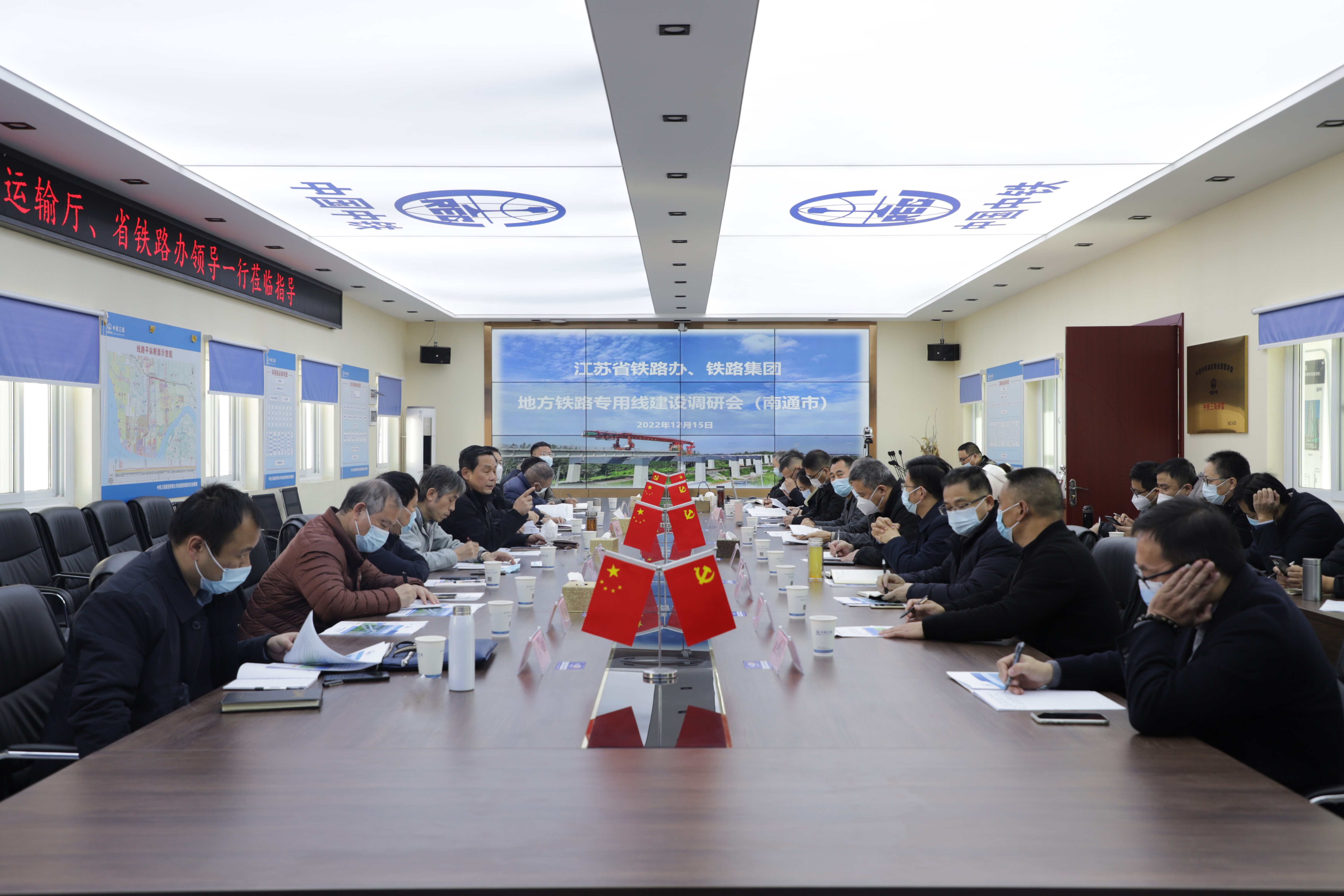 12月15日,省交通運輸廳一級巡視員丁軍華,省鐵路辦建管處處長賁志松、運法處處長馮煌飛、財審處處長王寶祥等一行前來南通港疏港鐵路一期工程開展地方鐵路專用線建設(shè)專題調(diào)研,并進(jìn)行了座談交流。南通市交通運輸局黨委委員、鐵路辦主任助理張志忠,南通市鐵路辦副主任黃建東,海門區(qū)政府黨組成員成建平,省鐵路集團運營公司董事長趙瑋,南通港(港口)集團黨委副書記、總經(jīng)理、副董事長劉建,海門區(qū)交通運輸局、南通港集團通海鐵路建設(shè)公司及南通沿海開發(fā)集團、洋呂鐵路開發(fā)建設(shè)公司等單位相關(guān)負(fù)責(zé)人陪同調(diào)研。