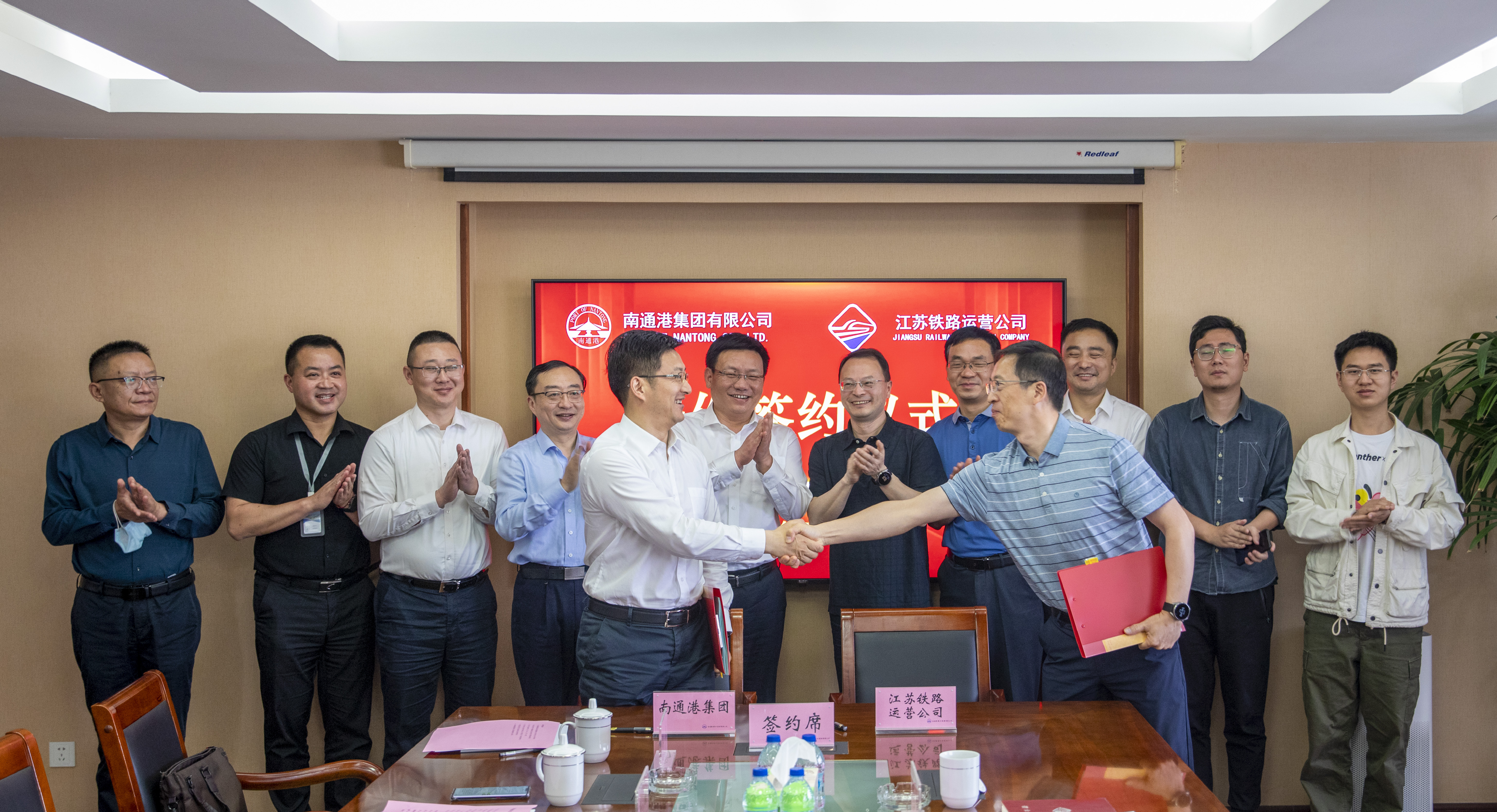 江蘇鐵路運(yùn)營公司運(yùn)營事業(yè)部部長奚鵬,公司運(yùn)營事業(yè)部工程師周誠、張楠,南通港集團(tuán)通海鐵路公司黨支部書記、董事長顧焱華,總經(jīng)理鎮(zhèn)杰,副總經(jīng)理張國光,南通港貨運(yùn)中心有限公司董事長、總經(jīng)理范斌及集團(tuán)行政事務(wù)部副部長(主持工作)周軍等共同見證本次簽約活動?;顒佑深欖腿A主持。